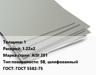 Лист нержавеющий 1 1.22х2 Сталь: AISI 201 Тип:SB, шлифованный ГОСТ 5582-75